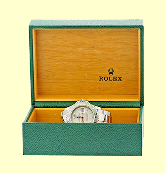 Capetown Certified Pre-Owned Gent's Stainless Steel & Platinum 40mm Rolex "Yacht-Master". Platinum Dial with White Gold Luminescent Hands and Hour Markers, Red Center Sweep Seconds Hand. Platinum Rotating Diver's Bezel, Date Indicator, Quickset Movement, Sapphire Crystal. Matching Stainless Steel Rolex "Oyster" Folding Oysterlock Safety Clasp Bracelet. Model Number: 16622 Case Diameter: 40mm Case Thickness: 11.5mm Water Resistance: 100m / 330ft Power Reserve: 48hr V Serial Number, Circa 2008-2009 Production, Inner Bezel Engraved Handmade Swiss Chronometer Certified(COSC) Automatic Movement(Calibre 3135). Capetown Certified Pre-Owned, Like New Condition with Rolex Box, Booklet, Hang Tag and complete with Capetown's Lifetime Warranty!! Remember, If we're shipping anywhere outside the state of Georgia, you stand to save even more! At this time, as long as we ship out of state, we are not required to collect sales tax at Capetown. Legitimate Tax Savings of up to 10%! Shop and Compare. Capetown Special: $9,490 Capetown is not an official Rolex jeweler. However, we are one of the largest independent vendors of Rolex products in the world since 1969. The Rolex warranty, "if any remains," may be voided, but is replaced by Capetown's Lifetime Warranty Click Here to read about Capetown's quality difference! Click here for the benefits of buying your new or pre-owned Rolex at Capetown. At Capetown, we're always looking for interesting trade-ins toward any purchase, such as your fine watch or upscale jewelry. Please call our purchasing department with any inquiries. Click here for more information. |