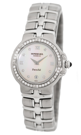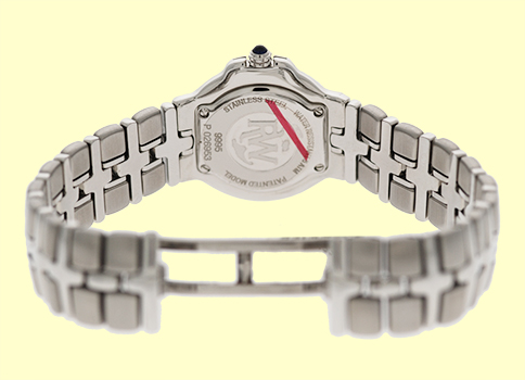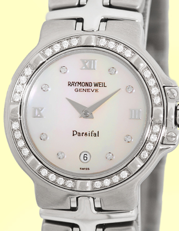Lady's Stainless Steel Raymond Weil Diamond "Parsifal". White Mother-of-Pearl Diamond Dial with Date Indicator. 18K White Gold Diamond Bezel, Sapphire Crystal. Matching Stainless Steel Raymond Weil Bracelet. Sapphire Cabochon Crown. Reference No: 9995 Case Diameter: 27mm. Swiss Quartz Accuracy Movement. Raymond Weil's advanced styles have taken the watch world by storm! This, the Parsifal, is the flagship of the line. Diamonds on Dial are Full Cut and Perfectly Matched! Shoppers Note: The Raymond Weil organization is militant against discounting!! This is the first time we've been able to offer this spectacular timepiece at this much of a discount! Brand New, Showroom Perfect with Raymond Weil Box, Papers, and Booklets and complete with Capetown's 1-Year Warranty!! Remember, If we're shipping anywhere outside the state of Georgia, you stand to save even more! As long as we ship out of state, you don't pay sales tax at Capetown. Legitimate Tax Savings of up to 10%! Retail Approx.: $3,295 You Save Over $1,300!!! Capetown Special: $1,990 At Capetown, we're always looking for interesting trade-ins toward any purchase, such as your fine watch or upscale jewelry. Please call our purchasing department with any inquiries. |