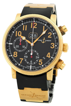 Gent's 18K Rose Gold Ulysse Nardin "Marine Annual Calendar" Chronograph. Black Dial with Rose Gold Arabic Numerals, Date & Month Indicators, Chronograph Functions and Sapphire Crystal. Highest Quality Black Rubber & 18K Rose Gold Ulysse Nardin Strap with 18K Rose Gold & Titanium Ulysse Nardin Dual Deployant Clasp . Reference No: 516-22 Case Diameter: 40mm Water Resistant to 100m Handmade Swiss Automatic Movement Visible Through Sapphire Exhibition Caseback. Pre-Owned, Like New Condition with Ulysse Nardin Wooden Box, Booklets, Warranty Papers and complete with Capetown's Lifetime Warranty!! Remember, If we're shipping anywhere outside the state of Georgia, you stand to save even more! As long as we ship out of state, you don't pay sales tax at Capetown. Legitimate Tax Savings of up to 10%! Retail Approx.: $22,995 You Save Over $10,000!! Capetown Special: $12,990 SOLD At Capetown, we're always looking for interesting trade-ins toward any purchase, such as your fine watch or upscale jewelry. Please call our purchasing department with any inquiries. Click here for more information. |