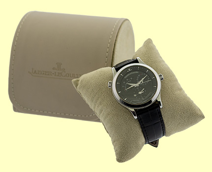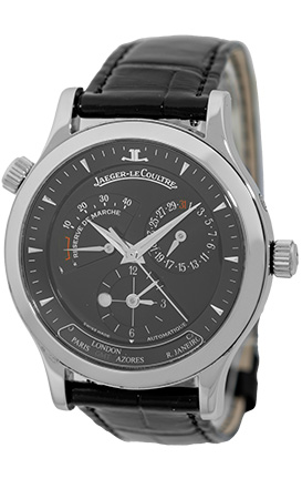 Gent's Stainless Steel Jaeger LeCoultre "Master Geographic" World Timer Strapwatch Black Dial with Black Subdials and Silver Baton Hour Markers, Sweep Second Hand, Date Indicator. World Time City Indicators, Dual Time Zone Indicator, AM/PM Indicator, Power Reserve Indicator and Sapphire Crystal. Highest Quality Jaeger LeCoultre Black Alligator Strap with Stainless Steel Jaeger LeCoultre Deployant Clasp. Reference No: 142.8.92.S Case Diameter: 38mm Handmade Automatic Movement Visible Through Sapphire Exhibition Caseback. Like New Condition with Jaeger LeCoultre Case, and complete with Capetown's Lifetime Warranty!! Remember, If we're shipping anywhere outside the state of Georgia, you stand to save even more! As long as we ship out of state, we do not have to collect Georgia sales tax. Legitimate Tax Savings of up to 10%! Capetown Special: $5,990 At Capetown, we're always looking for interesting trade- ins toward any purchase, such as your fine watch or upscale jewelry. Please call our purchasing department with any inquiries. |